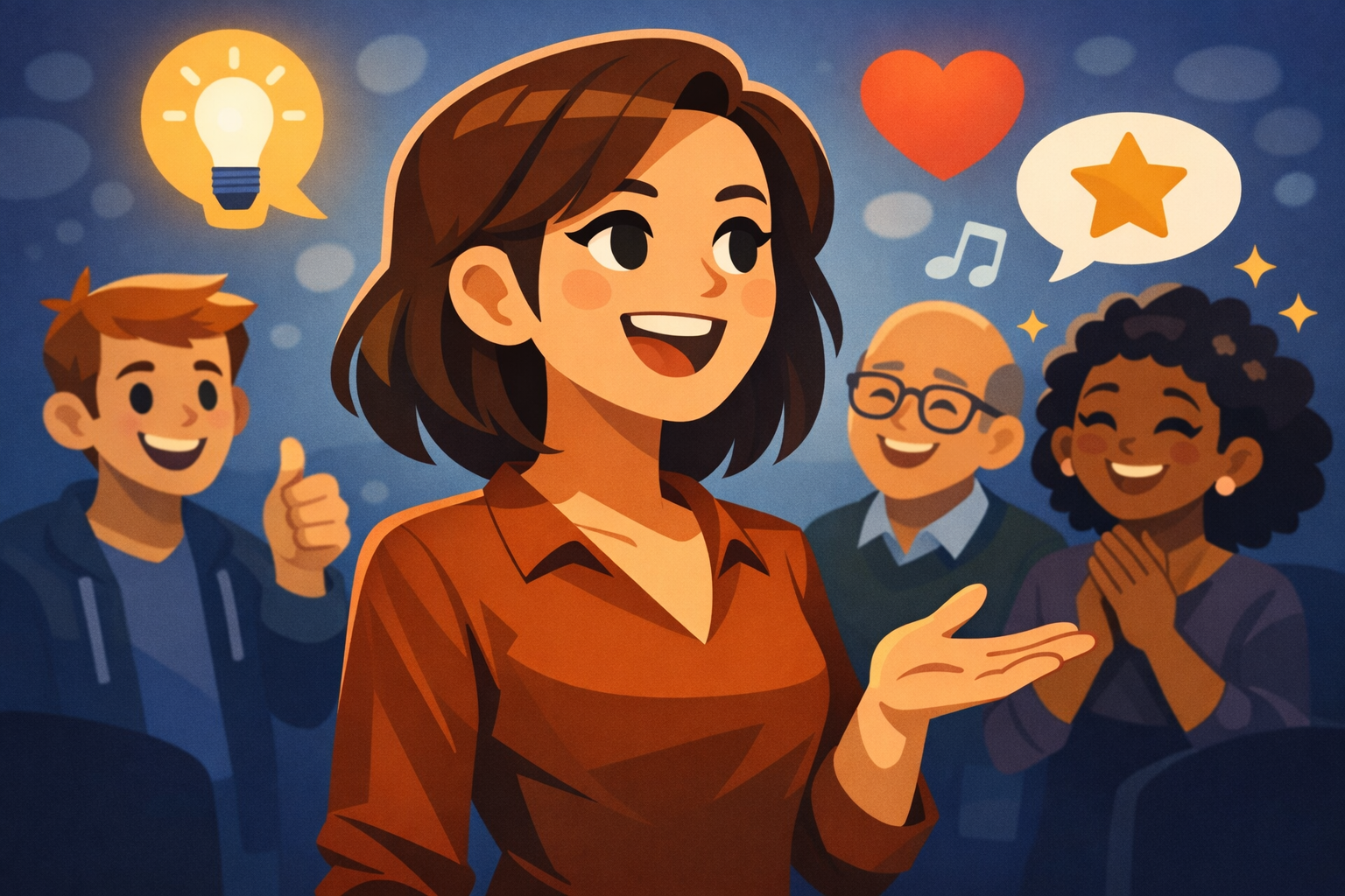 Wöchentliche Onlinetreffen, in denen du kurze spontane Reden hältst, Feedback bekommst und Schritt für Schritt deine Redeangst abbaust.